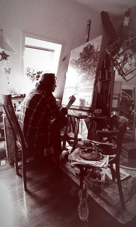 Nachdem ich ein Photo aufgenommen habe, bearbeite ich dieses am Computer, lasse es von einem Kunstdrucker in Hamburg auf einen lichtdurchlässigen Film (back-light) drucken, um es dann durch spezielle Kratztechniken und Kreidemalerei zu veredeln.