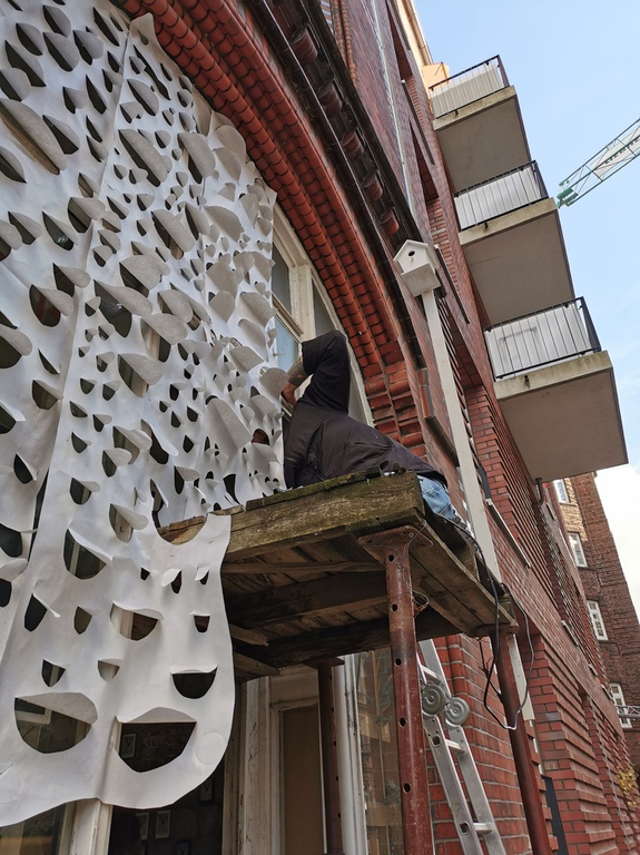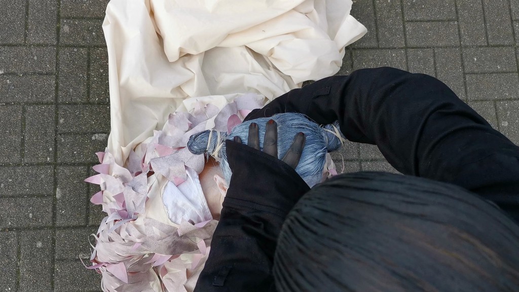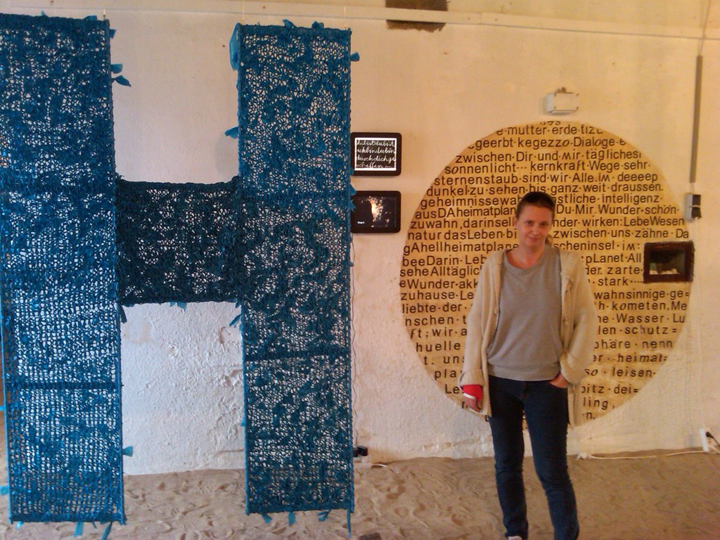 Bei meinen Objekten versuche ich neue Werkmittel zu erschliessen, wie zum Beispiel bei HzweiO ...hier habe ich aus zerschnittenen Müllsäcken ein grosses H gestrickt. Natürlich beziehen sich die Werkstoffe auf das Thema - in diesem Fall behandelte ich die Umweltverschmutzung, die sich auch in den riesigen Müllstrudeln unserer Weltmeere niederschlägt.