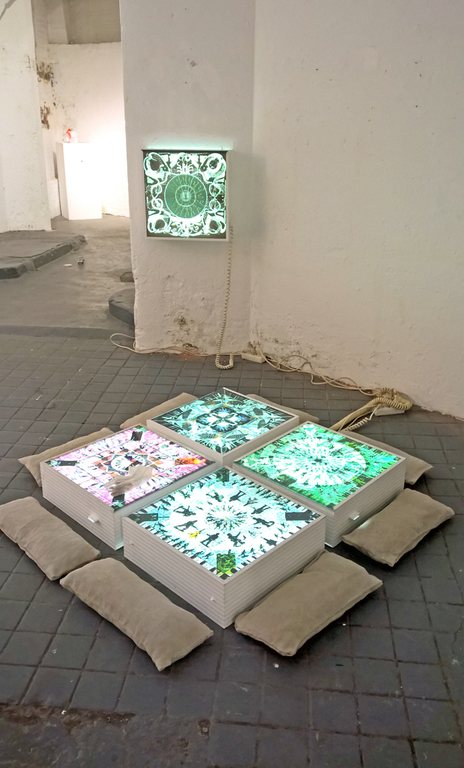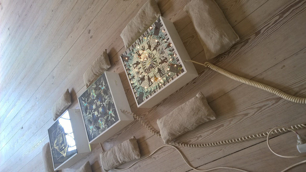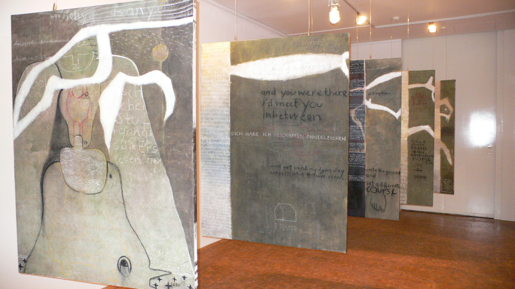 Nach drei Jahren Arbeit ist es uns gelungen eine Bilderschau, bestehend aus 125 mixed media Werken fertig zu stellen. In drei Serien beschreiben wir einen Raum, in dem beide Ebenen nebeneinander existieren - ineinanderfliessend, sich anziehend und abstoßend, sich gegenseiteig vernichtend oder bedingend. Die Arbeiten wurden an verschiedenen Orten des Rausches und der Mysterien ausgestellt, um sich an diesen Orten "aufzuladen".