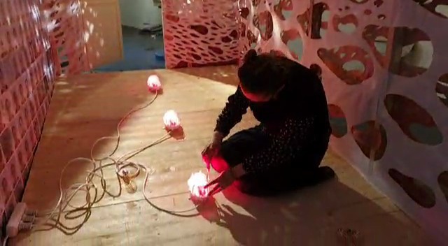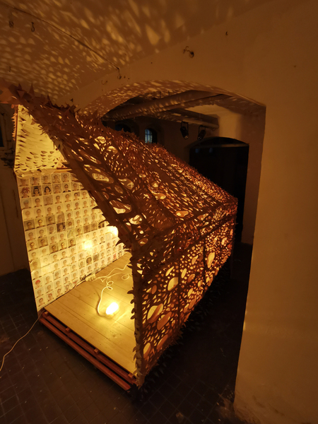 Die performativ bespielbare Rauminstallation „Homo absconditus“ – der verborgene Mensch - macht den existenzphilosophischen Ansatz Blochs intuitiv erfahrbar.