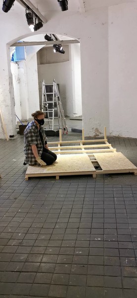 Zur Zeit der Performance Vorbereitungen probte Nika für „die Welt und ICH“ unter der Regie von Ute Hannig, das im Malersaal beim Backstage-Festival aufgeführt wurde. (www.schauspielhaus.de/de_DE/backstage)