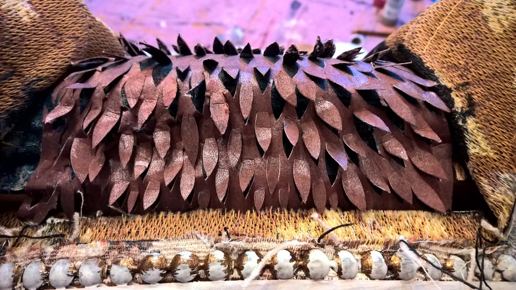 Die Drachenhäute und Nadelcollagen sind der sichtbare Ausdruck dieser immer wieder neu von mir beleuchteten Reflexion über uns als Menschen im Umgang mit diesen Fragestellungen.